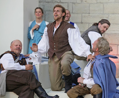 „Die drei Musketiere“ – nach dem gleichnamigen Roman von Alexandre Dumas; Musik, Songtexte: Rob und Ferdi Bolland; Buch: André Breedland; Deutsche Bearbeitung: Ruth Deny (Dialoge), Wolfgang Adenberg (Liedtexte); Regie: Craig Simmons; Choreografie: Marc Bollmeyer; Kampf-Choreografie: Christian Ewald; Ausstattung: Kati Kolb; Dramaturgie: Jennifer Traum; Musikalische Leitung: Heiko Lippmann. Darsteller: Merlin Fargel (D’Artagnan), Franziska Becker (Milady de Winter), Ron Holzschuh (Kardinal Richelieu), Franziska Schuster (Constance), Udo Eickelmann (Athos), Mario Gremlich (Porthos), Veit Schäfermeier (Aramis), Maike Switzer (Königin Anna), Fehmi Göklü (König Ludwig XIII/ Ensemble), Thorin Kuhn (Rochefort/ Ensemble), Daniel Printz (Lord Buckingham/ Ensemble), Bosse Vogt (James/ Ensemble), Susanna Panzner (Conférencier/ Ensemble), Wolfgang Grindemann (Vater/ Monsieur Bonacieux/ Ensemble), Alice Susan Hanimyan, Laura Joeken, Tabea Scholz, Luise Schubert, Nicolai Schwab. Uraufführung: 30. März 2003, Nieuwe Luxor Theater, Rotterdem. Deutschsprachige Erstaufführung: 6. April 2005, Theater des Westens, Berlin. Premiere: 24. Juni 2016, Gandersheimer Domfestspiele, Bad Gandersheim. Besuchte Vorstellung: 9. Juli 2016.